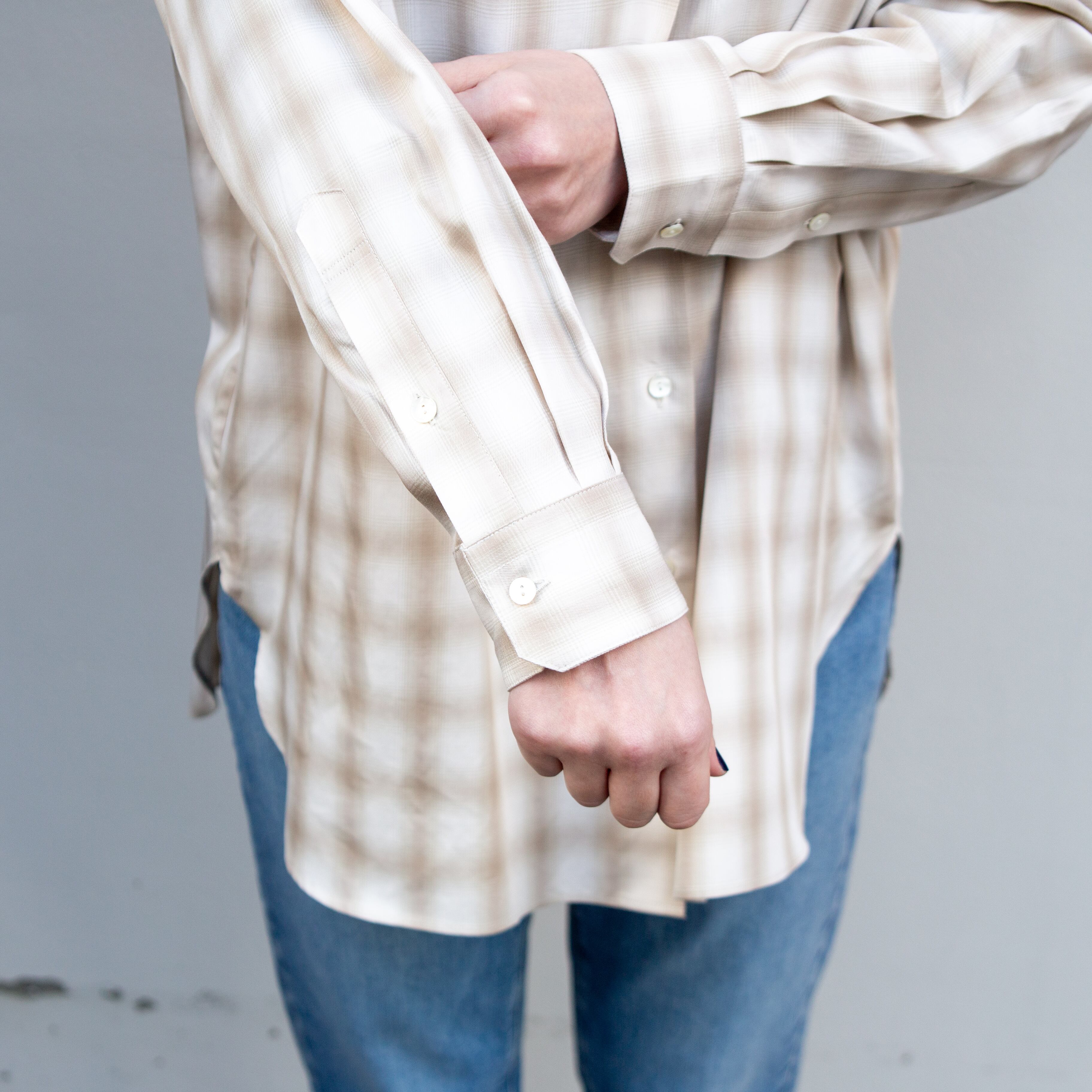 播州織の綺麗な風合いがありため、カジュアルながら上品さが漂う一枚に仕上がりました。