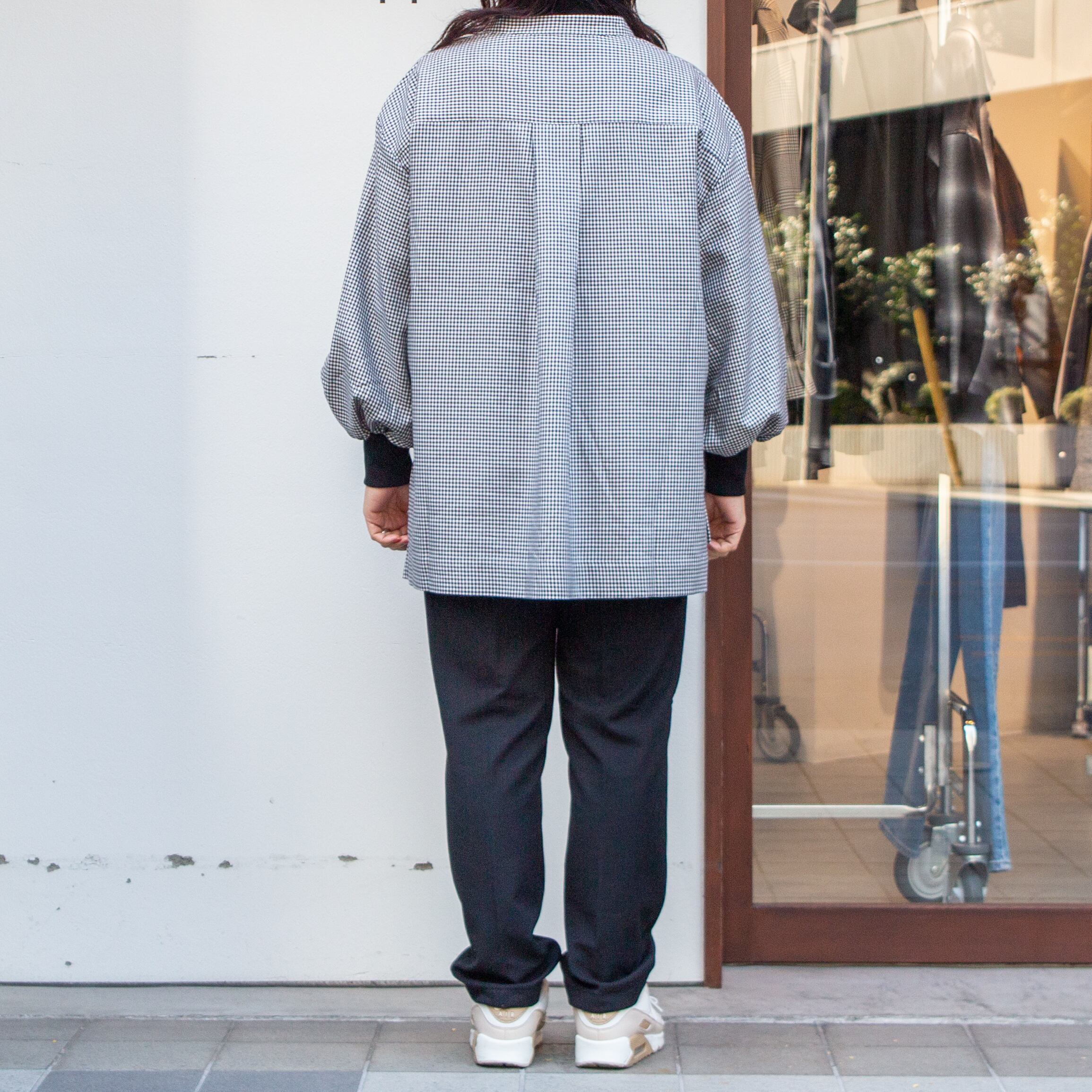 事務作業などで腕まくりが落ちてこないようにブラウスの袖部分をリブ仕様に。