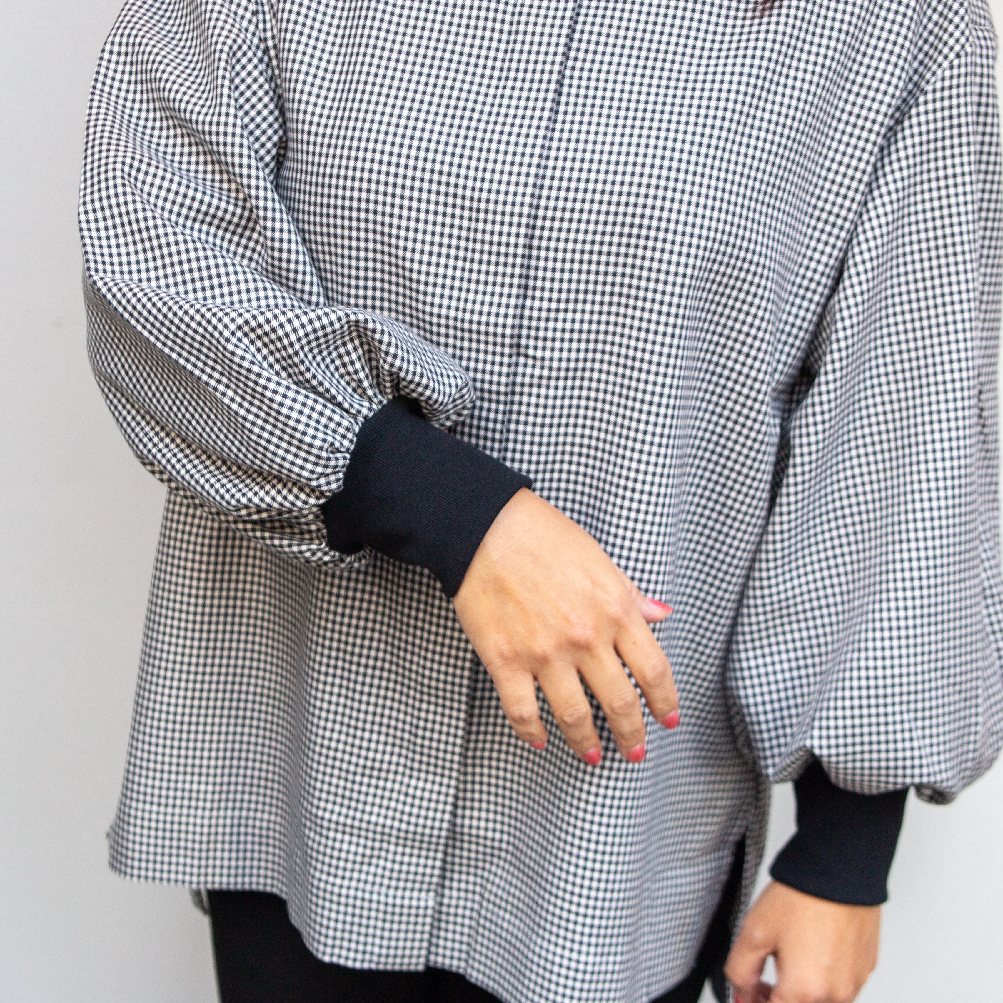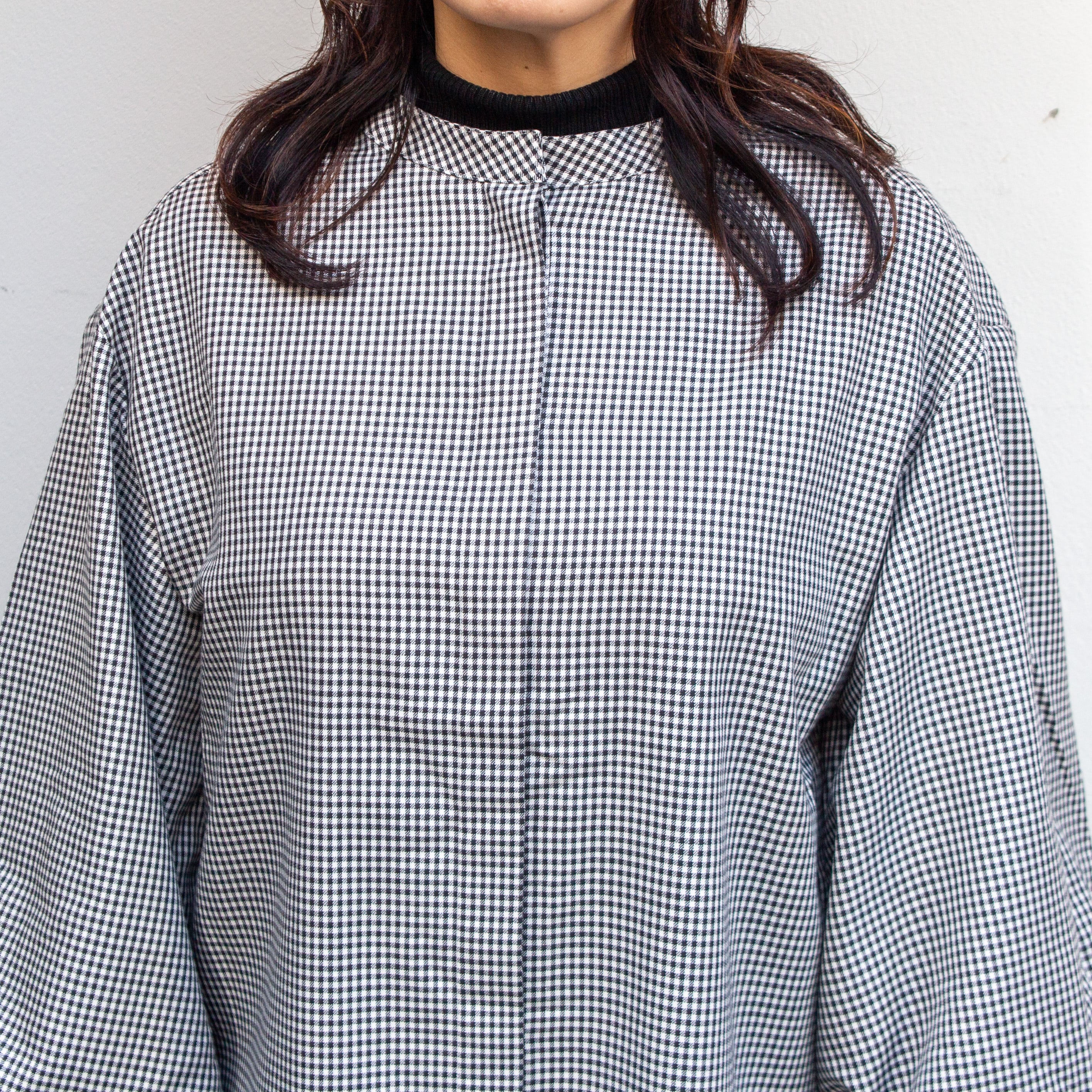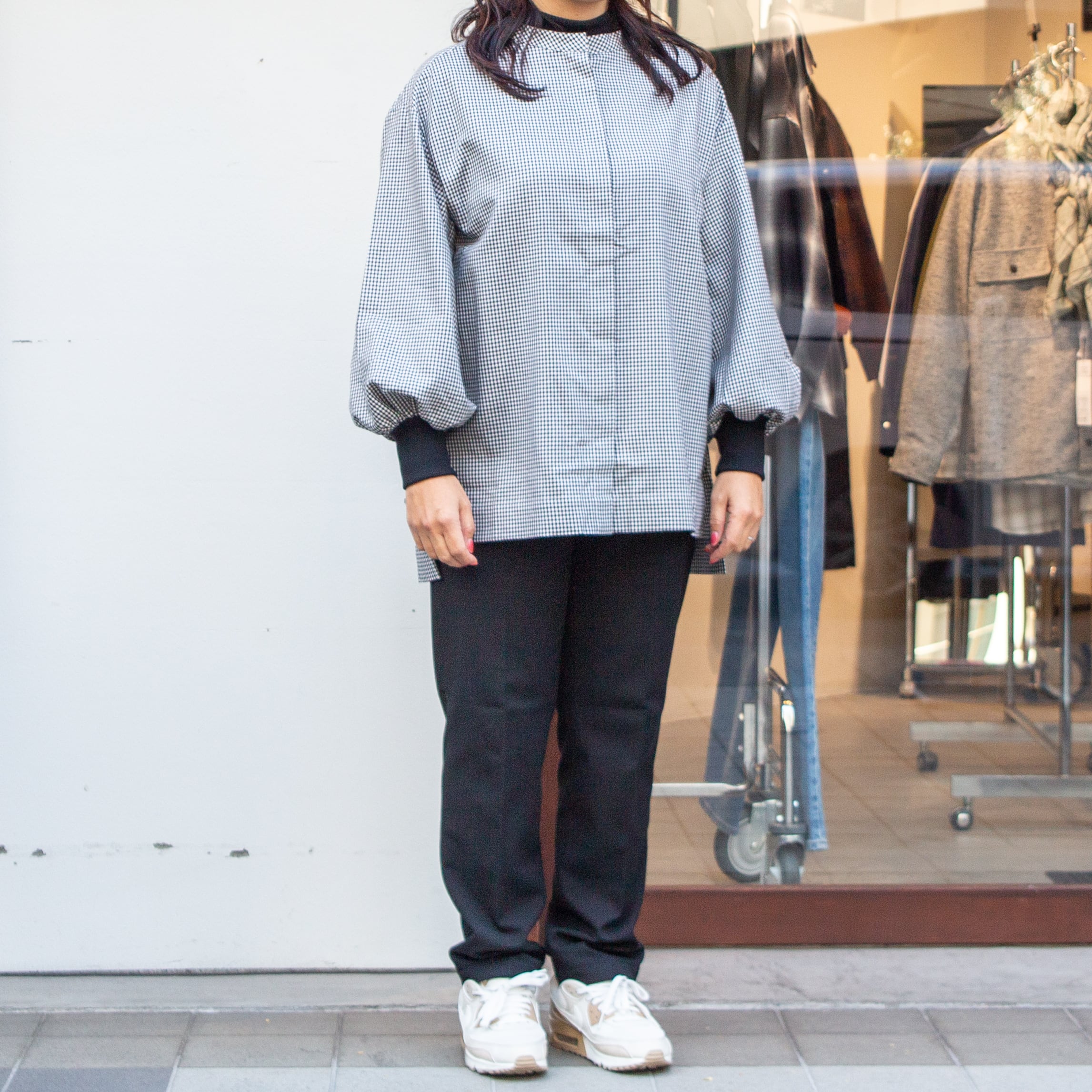 播州の働く女性の声から生まれたリブバンドブラウスをクラシカルなチェック柄でご用意しました。